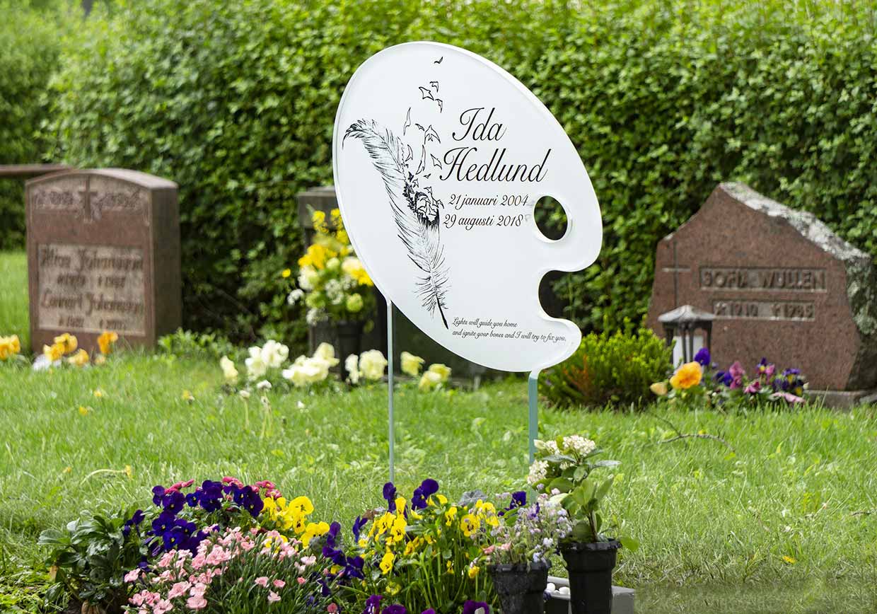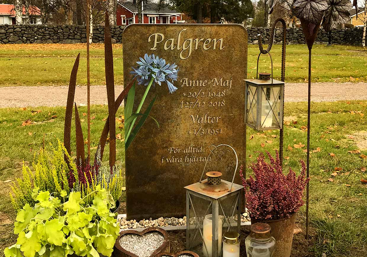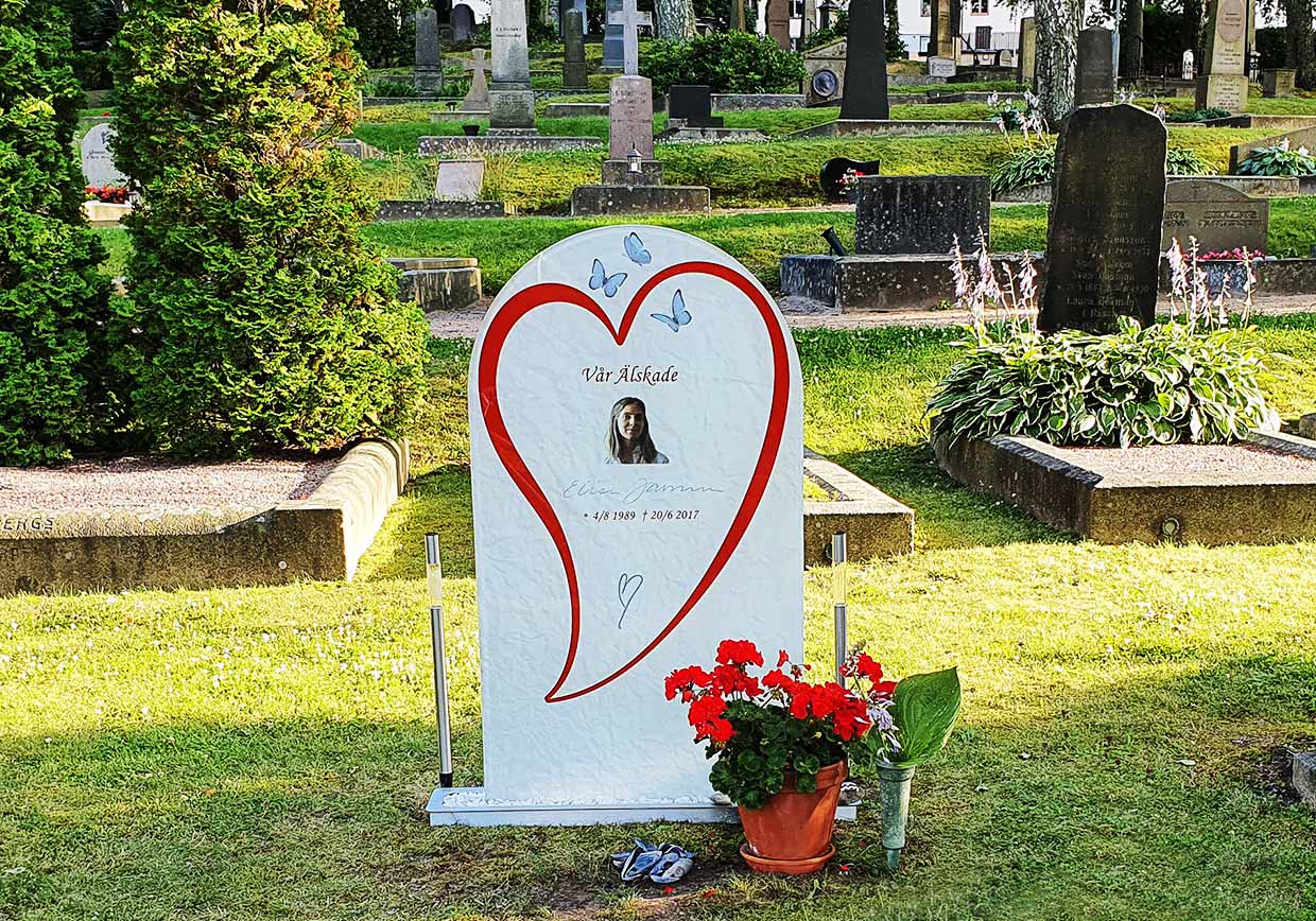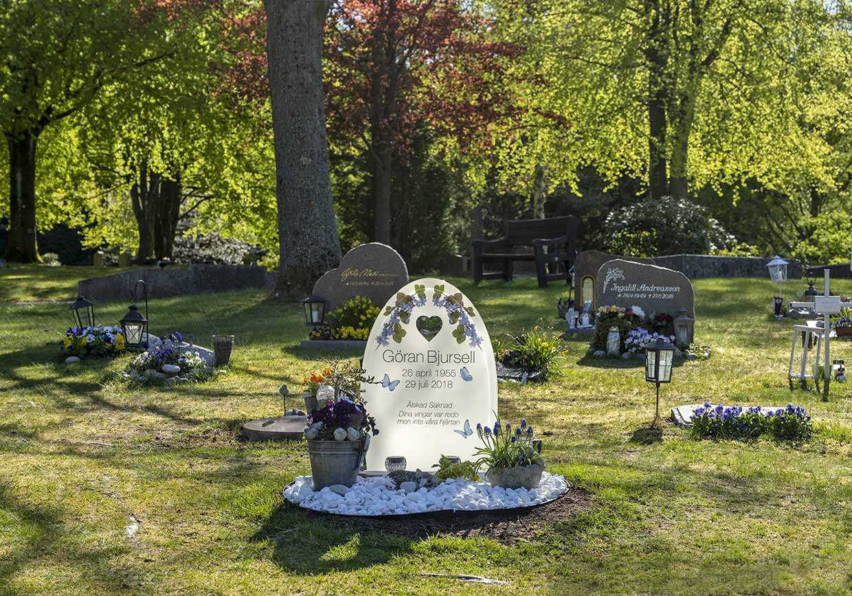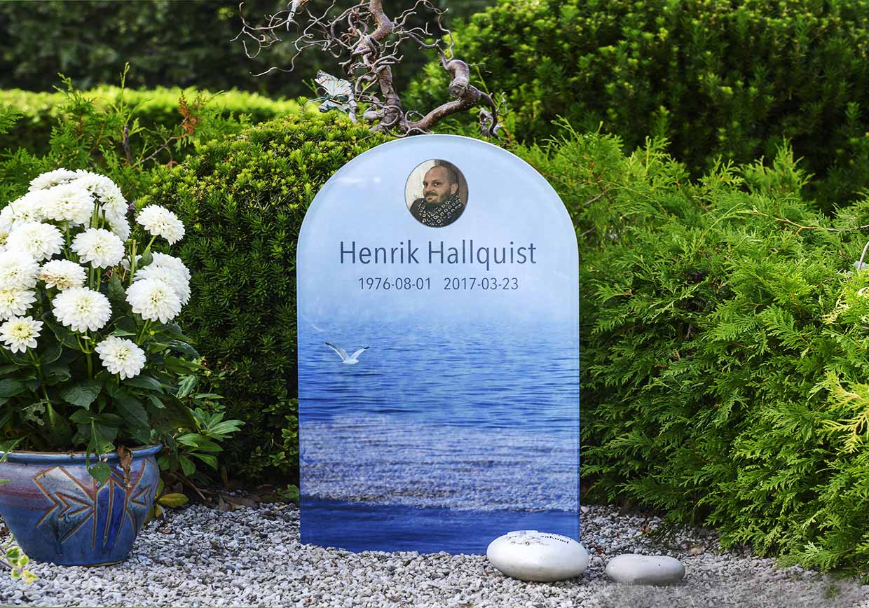 Här visar vi foton på monterade gravstenar från olika kyrkogårdar i Sverige. Det visar på det breda utbudet av glasgravstenar som vi erbjuder. Låt dig inspireras av olika färger, former och motiv för att skapa en unik gravsten.