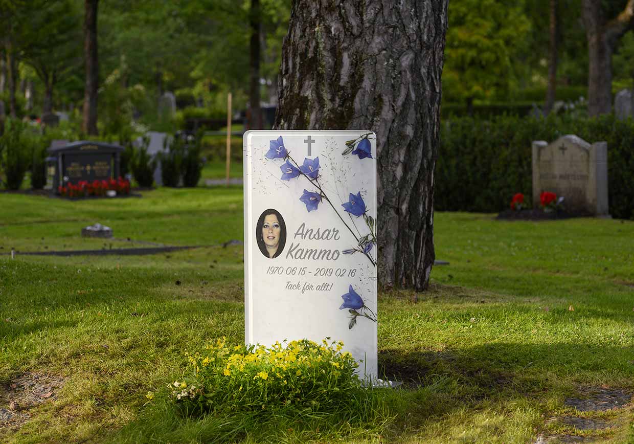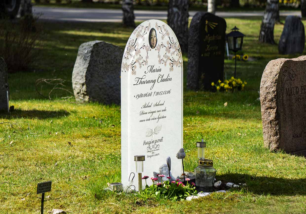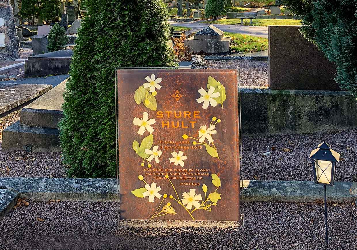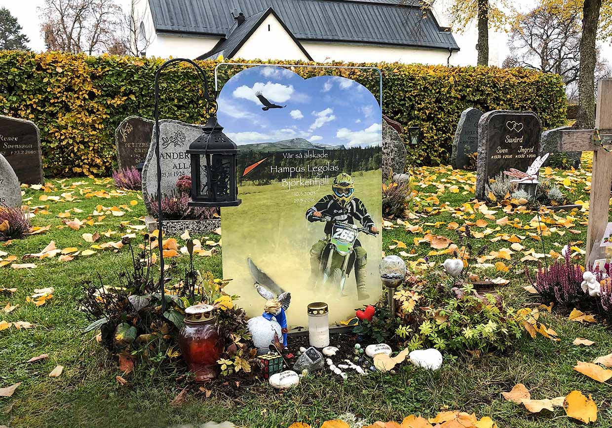 Här visar vi foton på monterade gravstenar från olika kyrkogårdar i Sverige. Det visar på det breda utbudet av glasgravstenar som vi erbjuder. Låt dig inspireras av olika färger, former och motiv för att skapa en unik gravsten.