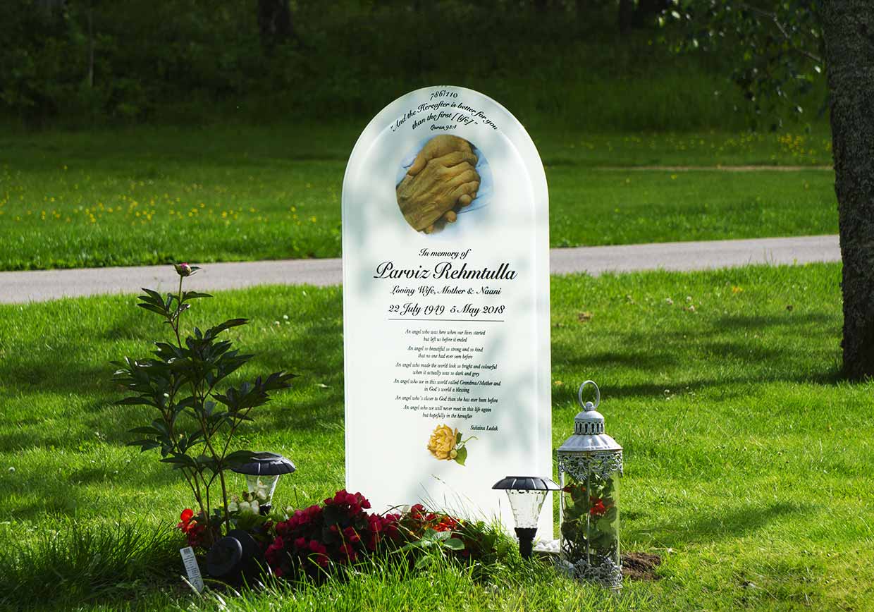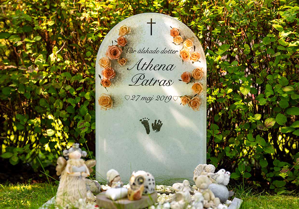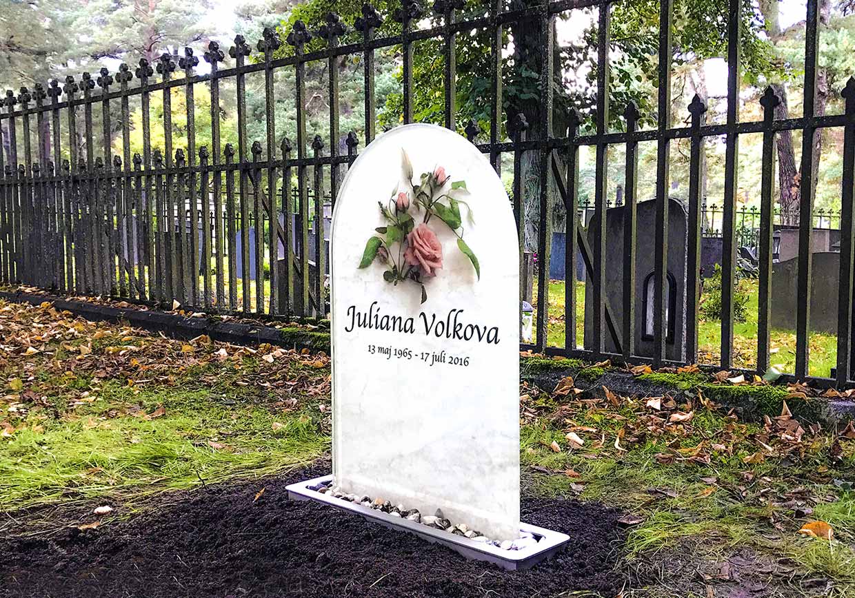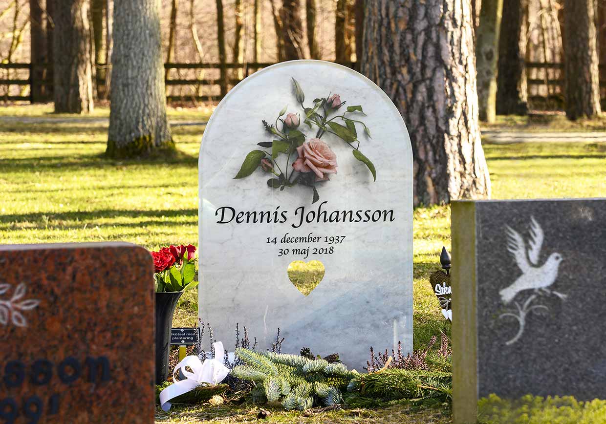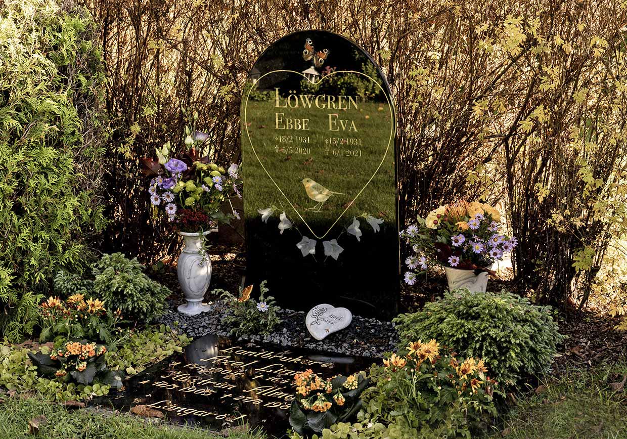 Här visar vi foton på monterade gravstenar från olika kyrkogårdar i Sverige. Det visar på det breda utbudet av glasgravstenar som vi erbjuder. Låt dig inspireras av olika färger, former och motiv för att skapa en unik gravsten.