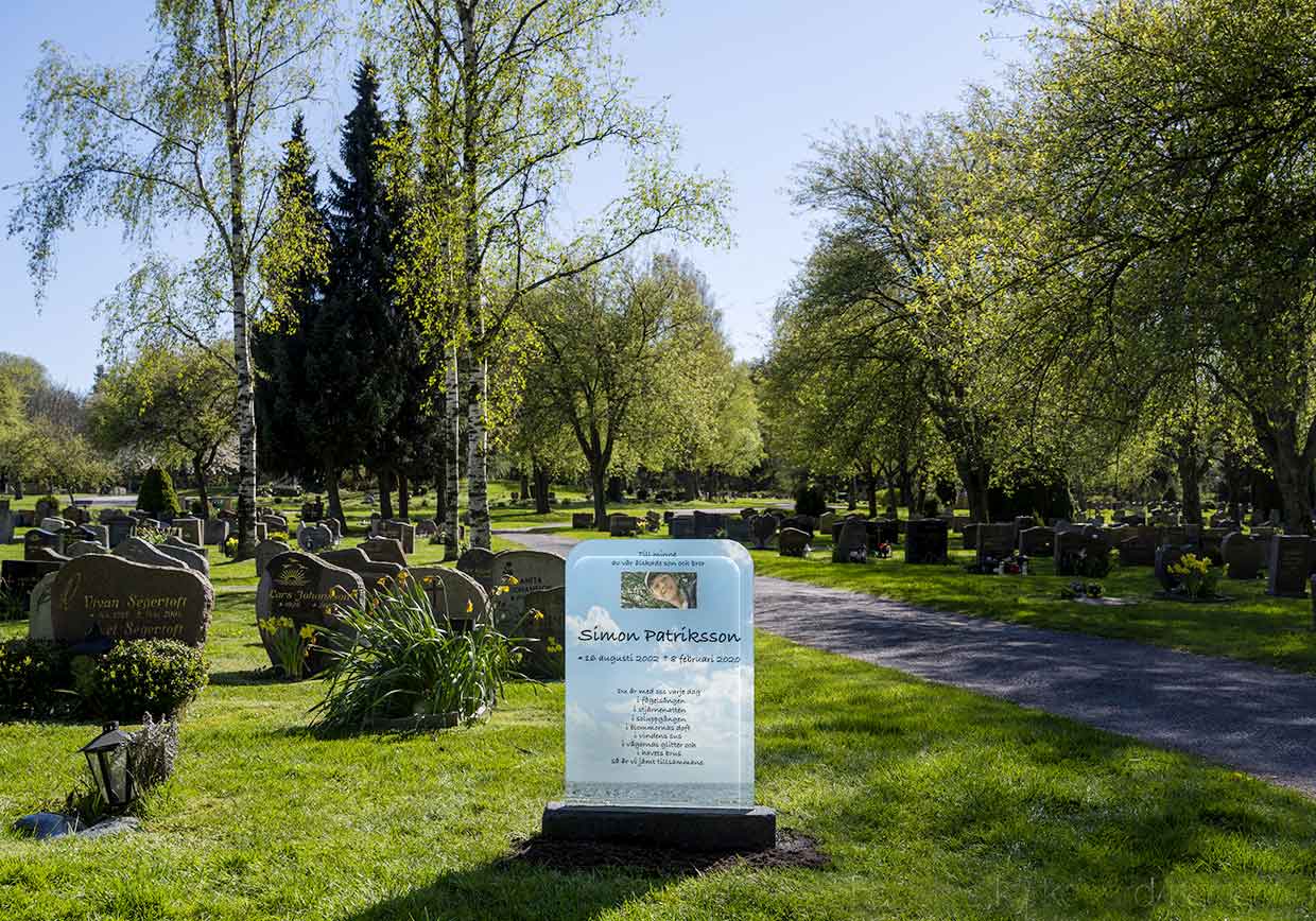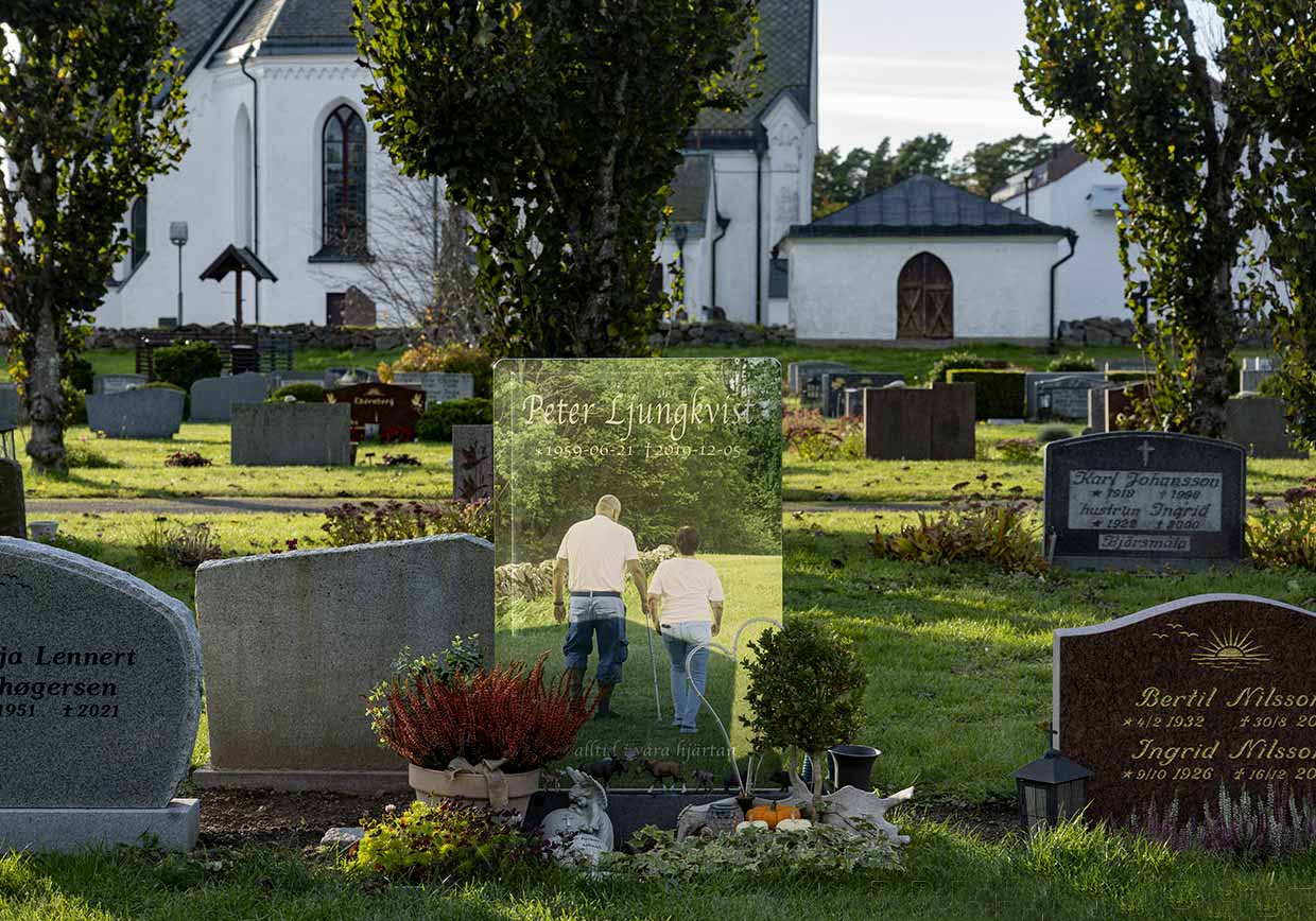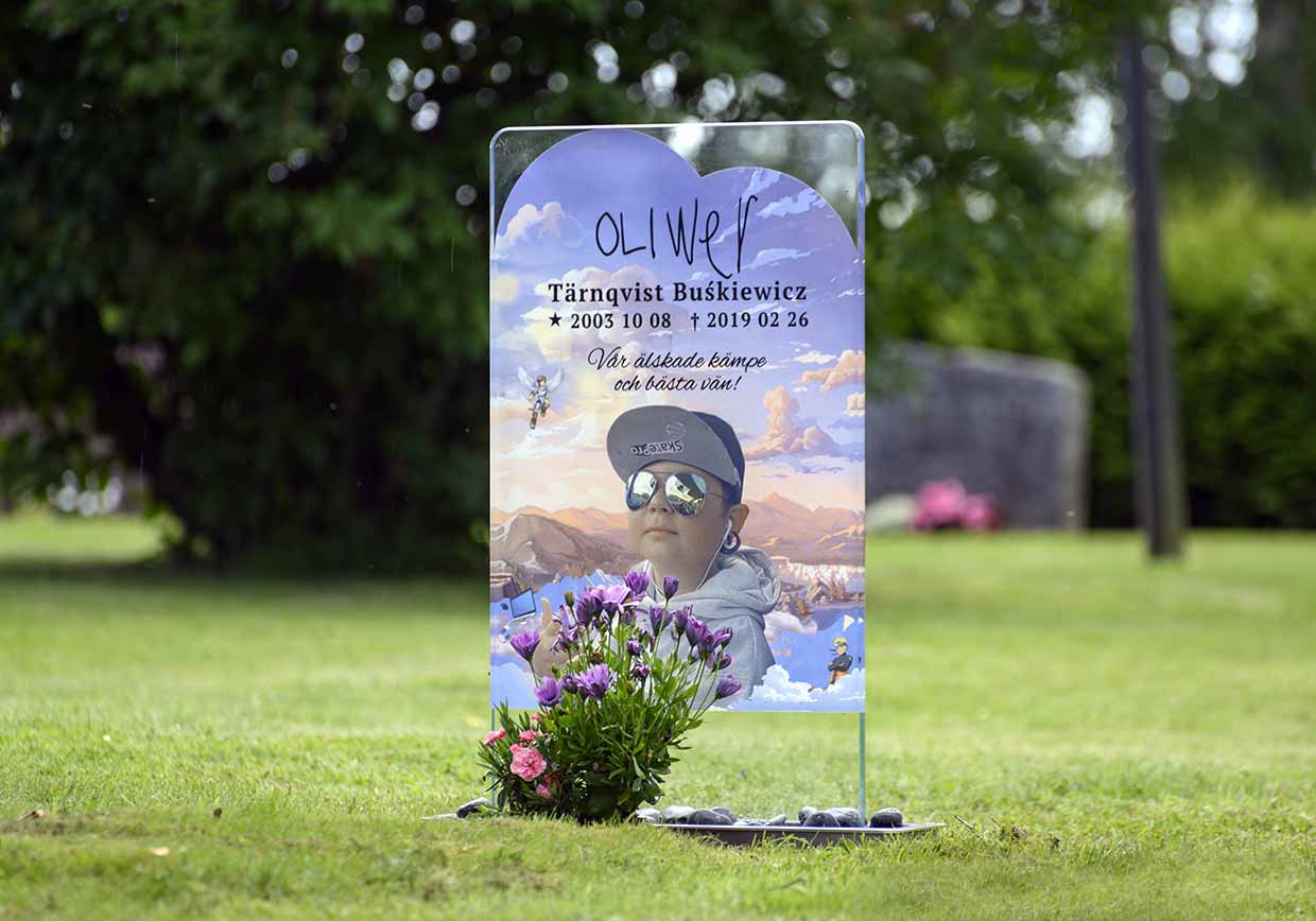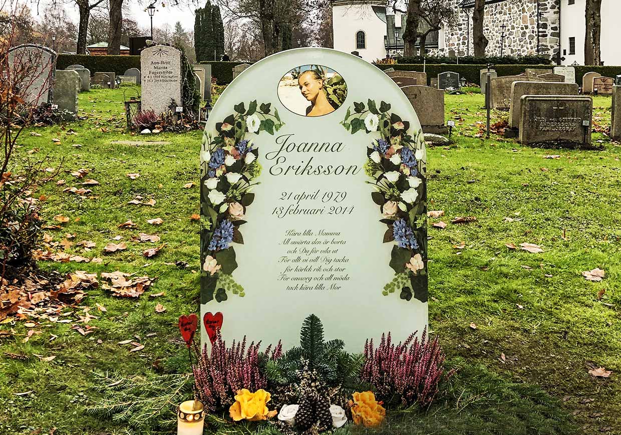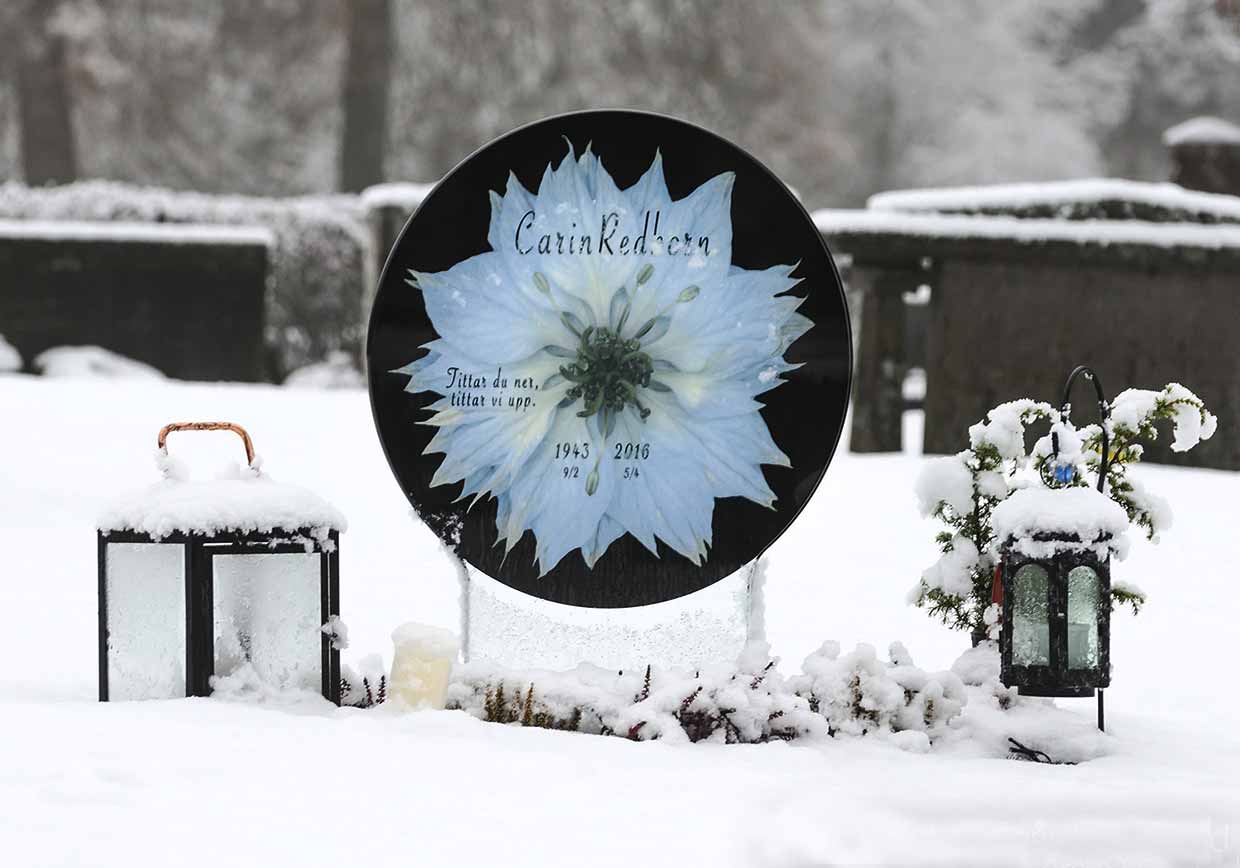Vi har fått tillstånd från anhöriga att visa foton på deras glasgravstenar.